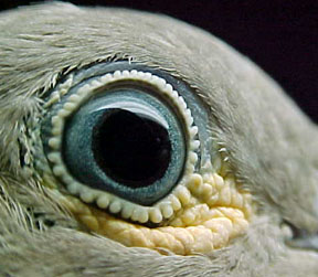 Description: Length 21-23 cm. Forehead fawn brown shading to greyish brown on crown, nape. Hindneck & mantle fawn brown with vinous or pinkish suffusion. Chin & throat white; sides of neck & breast pale vinous pink which extends to belly & undertail coverts. Shoulder has a white patch which extends along edge of underwing. primaries, secondaries, primary flight coverts & underwing black. Central tail feathers dark grey brown rest of tail feathers black. iris blue; eye cere yellow or orangish yellow; bill black; legs & feet brown or greyish to dark brown. Female: overall a duller color having very little vinous pink suffusion on underside. Juvenile similar to female but having buff edges to the feathering. As in most dimorphic species, the juvenile males & females are slightly different from one another, males being a bit darker in their coloration.